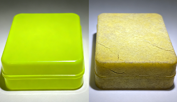 УФ-индуцированное обесцвечивание происходит до10 × быстрееВ ускоренных условиях.
